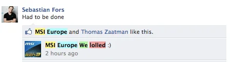 När den här serien postades på MSI Europs Facebook-sida blev stämningen inte direkt bättre. Men MSI Europe gillade serien och postade denna kommentar: