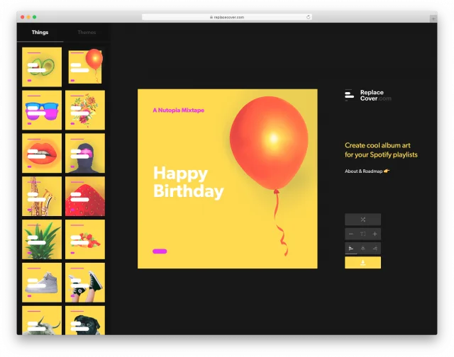 Tjänsten heter Replace Cover och är en webbapp där du lätt kan välja en bild, ett tema, och ändra texten som står. Resultatet blir en bild som du kan ladda upp till din spellista för att piffa upp den.