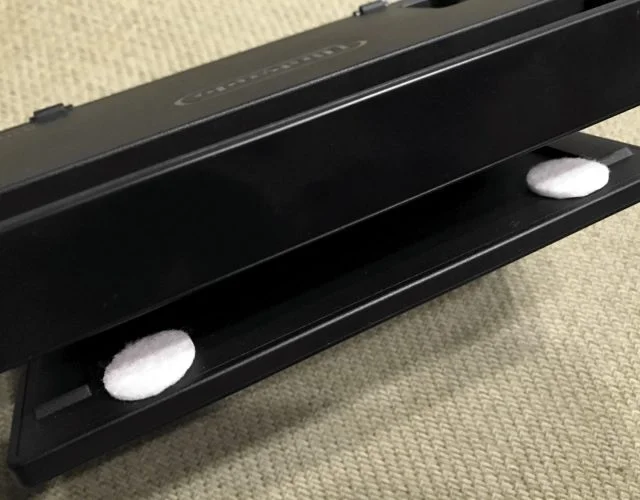 Undangömt (nåja) i fredagens Spelbloggen-post om Nintendo Switch så återfinns ett tips om hur du kan skydda din Switch-skärm från repor i docken. Det finns många varianter där ute på nätet, allt från tunna strumpor runt dockens framsida till gummilister. Jag föredrar vanliga möbeltassar från Ikea, enligt bilden ovan. På så sätt riskerar du inte repa skärmen när du sliter upp Switchen för att hinna till LAN-partyt, eller vart du nu är på väg.