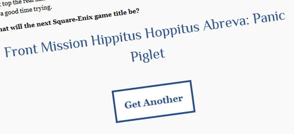 Nytt eller ej, för de som missat tipsar vi om lite söndagsunderhållning. En roande namngenerator som slumpar fram titeln på nästa spel från Square Enix. Hyfsat träffsäkert och riktigt roligt. Det finns även en för Professor Layton. Testa själv!